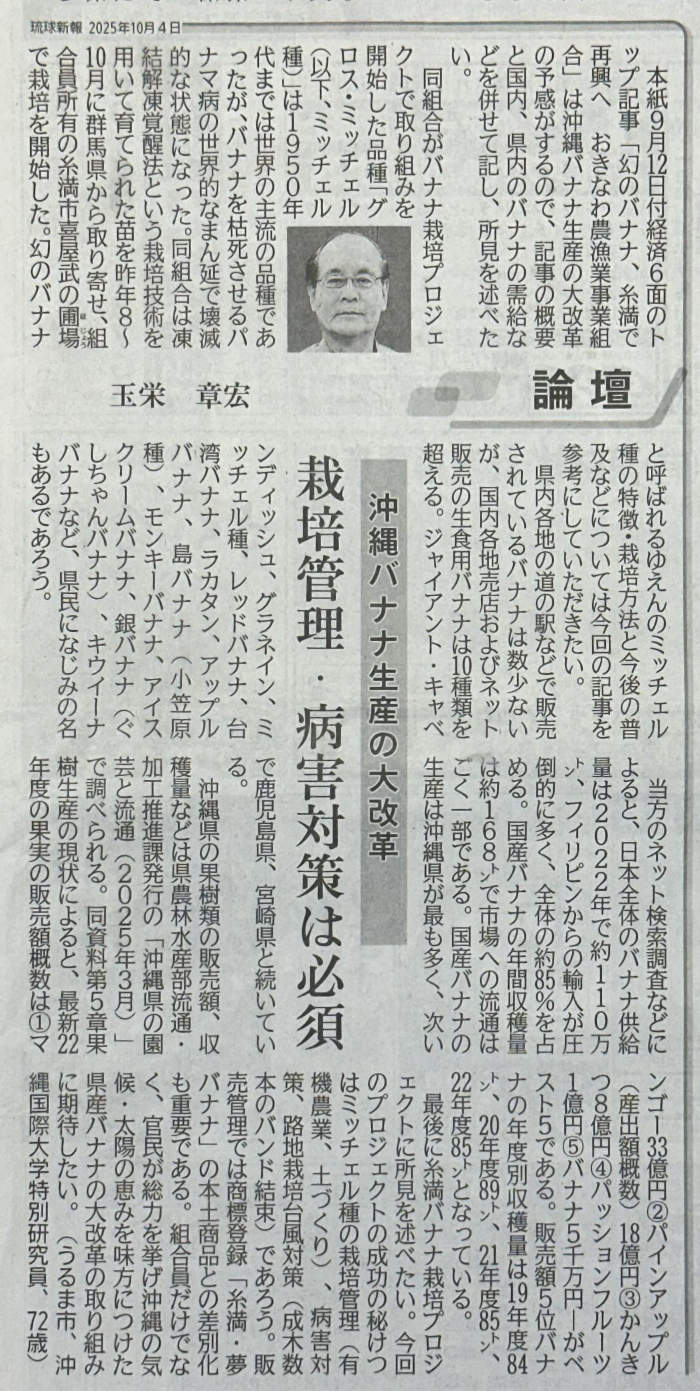 琉球新報 論壇(2025年10月4日)